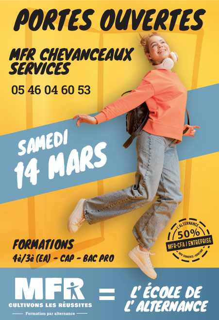 La MFR de Chevanceaux a le plaisir de vous inviter à la journée portes ouvertes afin de vous présenter leurs formations.